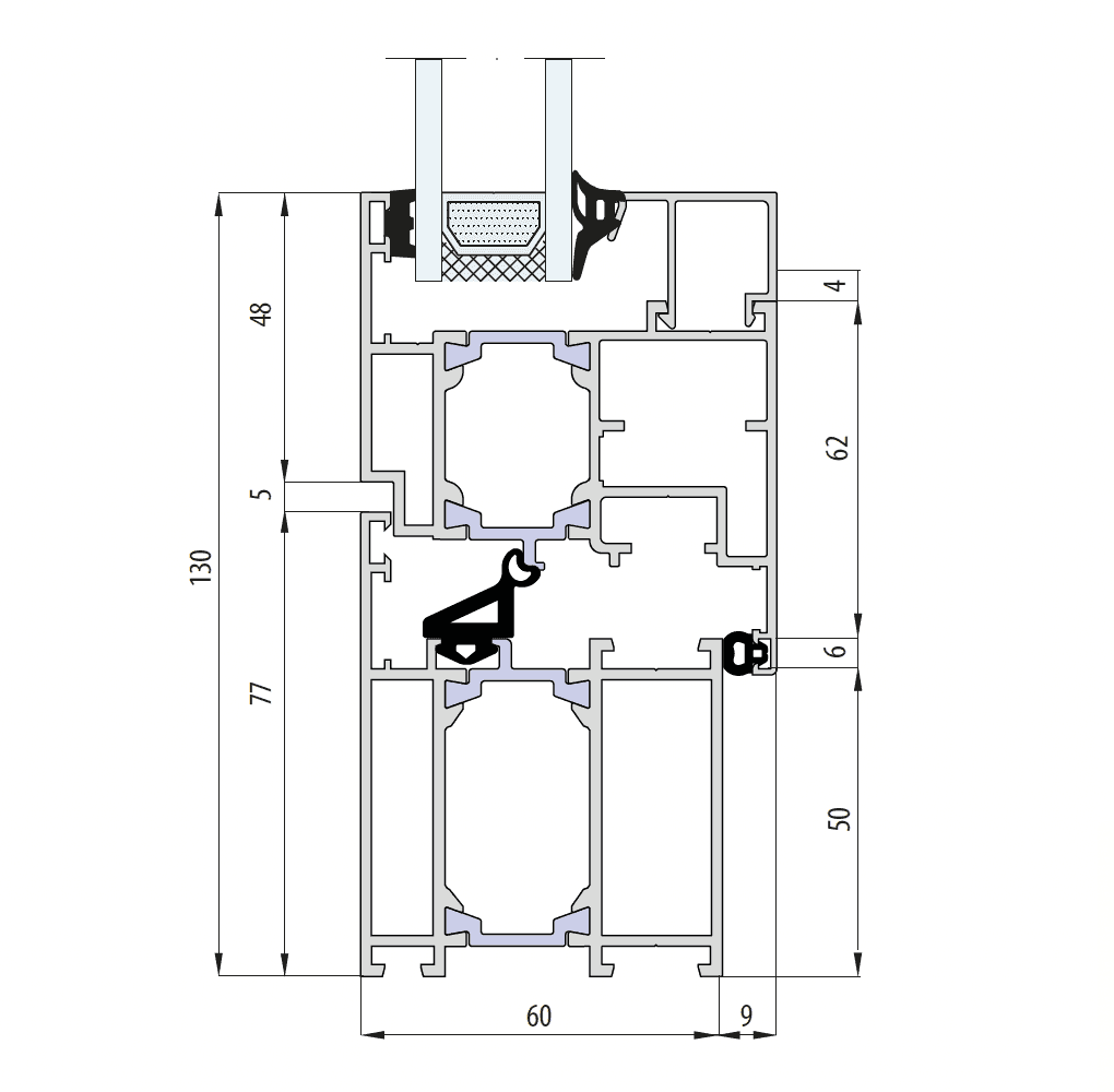 caixilho com uma profundidade de 60 mm (porta/janela)