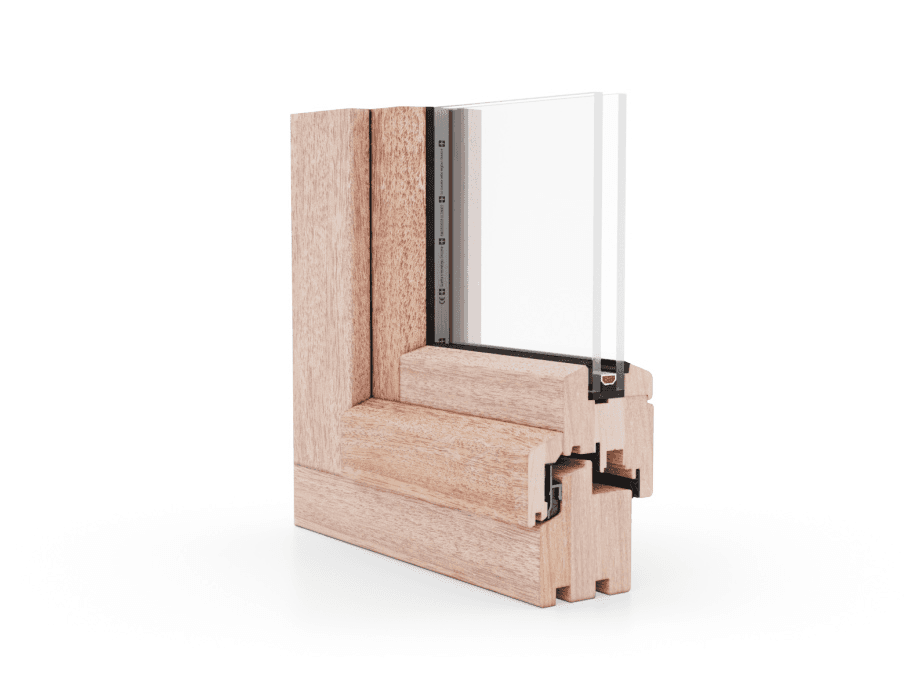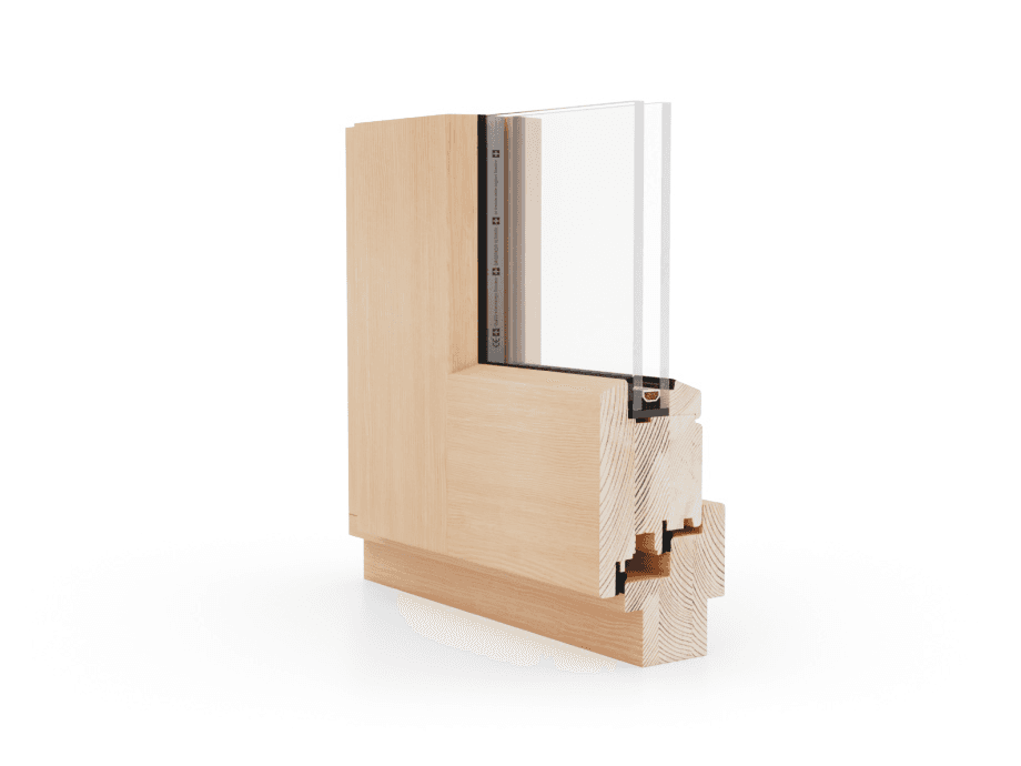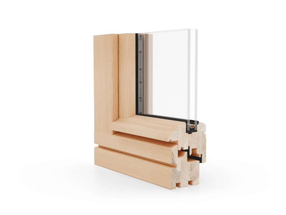 A madeira maciça é concebida principalmente para janelas e portas onde são utilizados revestimentos claros (transparentes). O mais importante é que não existem juntas neste madeira e o material é selecionado de forma a obter as secções mais extensas possíveis de madeira sem defeitos naturais.