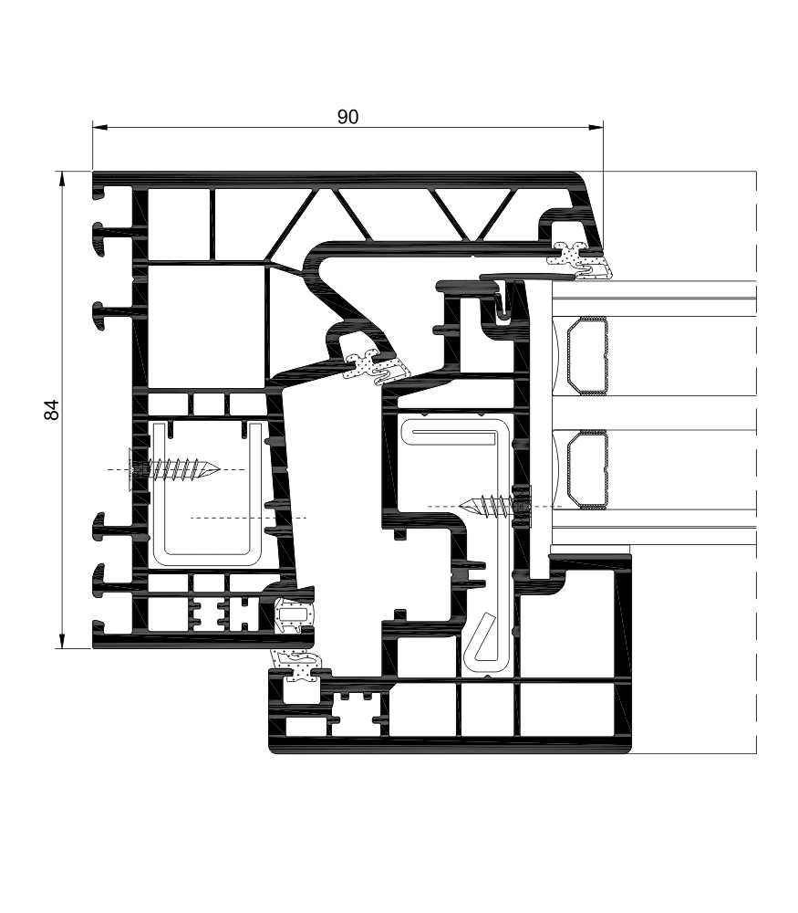 Minimalismo em PVC, secção vista de 90 mm.