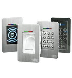 Existem dispositivos com um teclado numérico, que utilizam cartões RFID e digitalizam impressões digitais.
