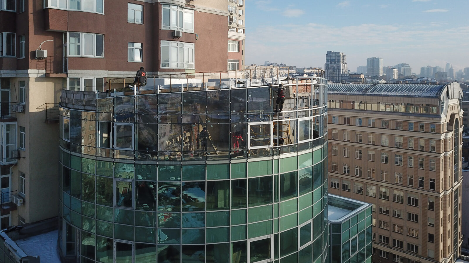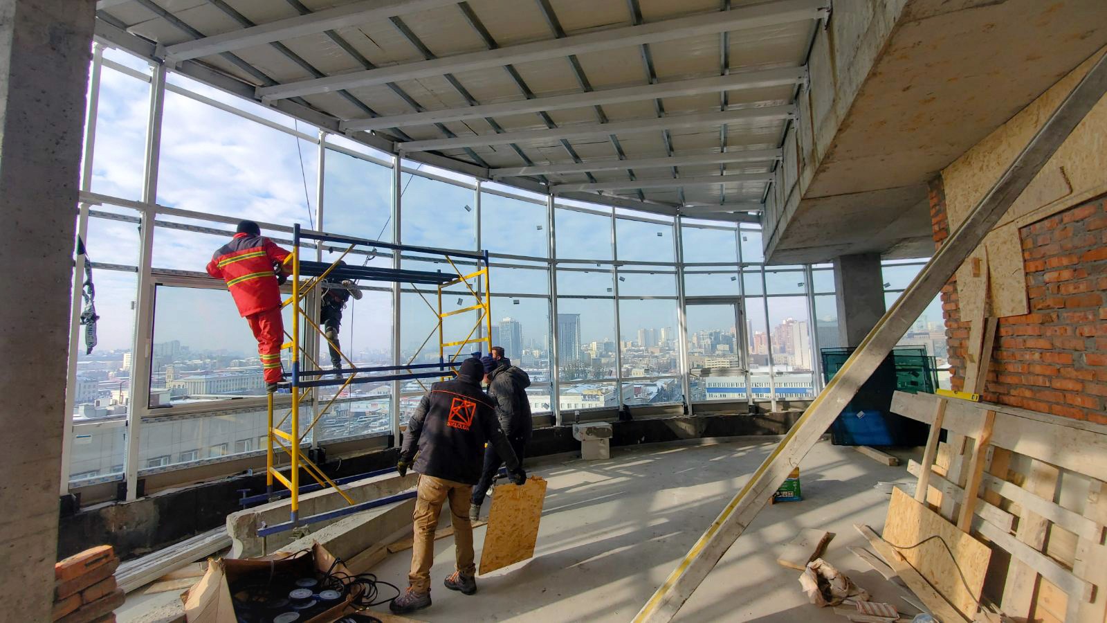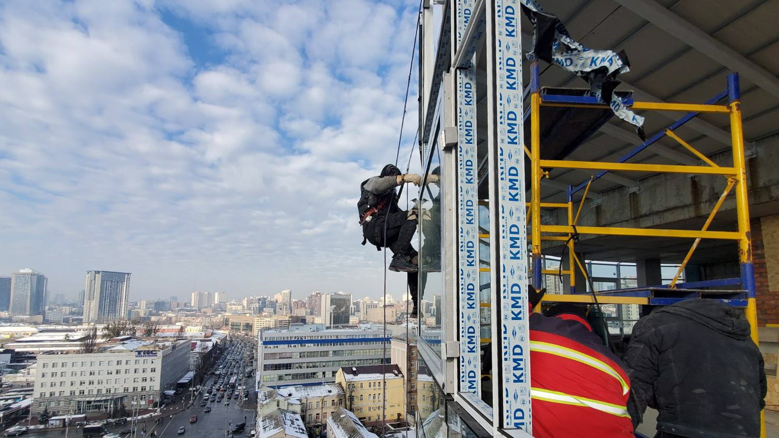 Completar o envidraçamento da fachada do edifício, instalando o sistema de fachada no último andar.