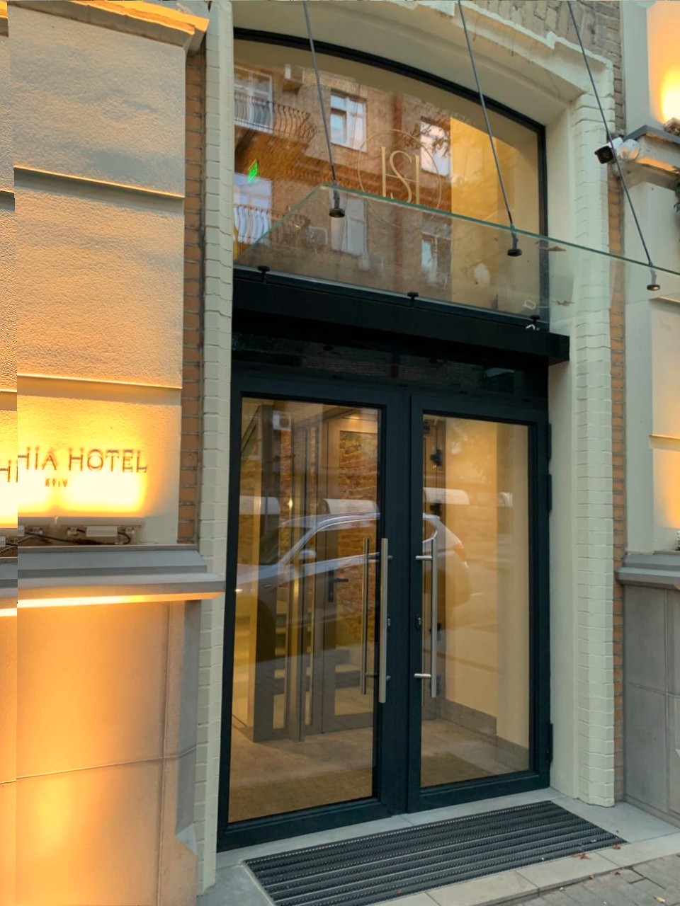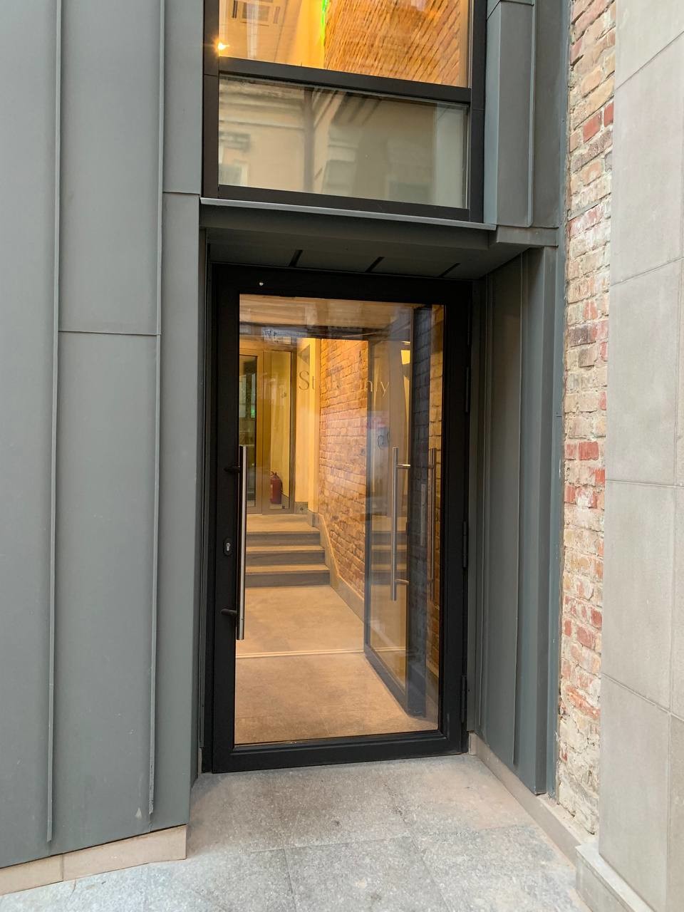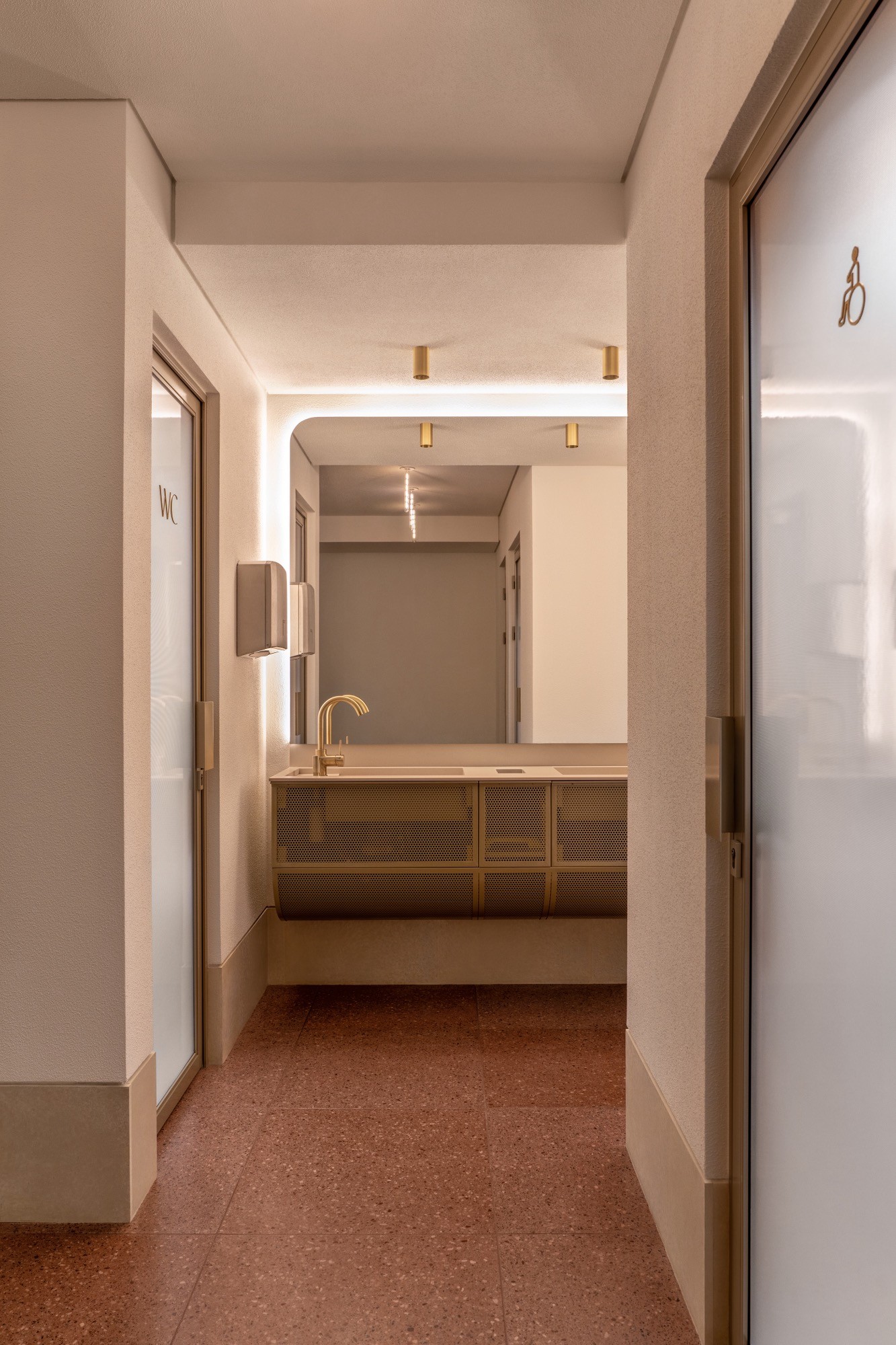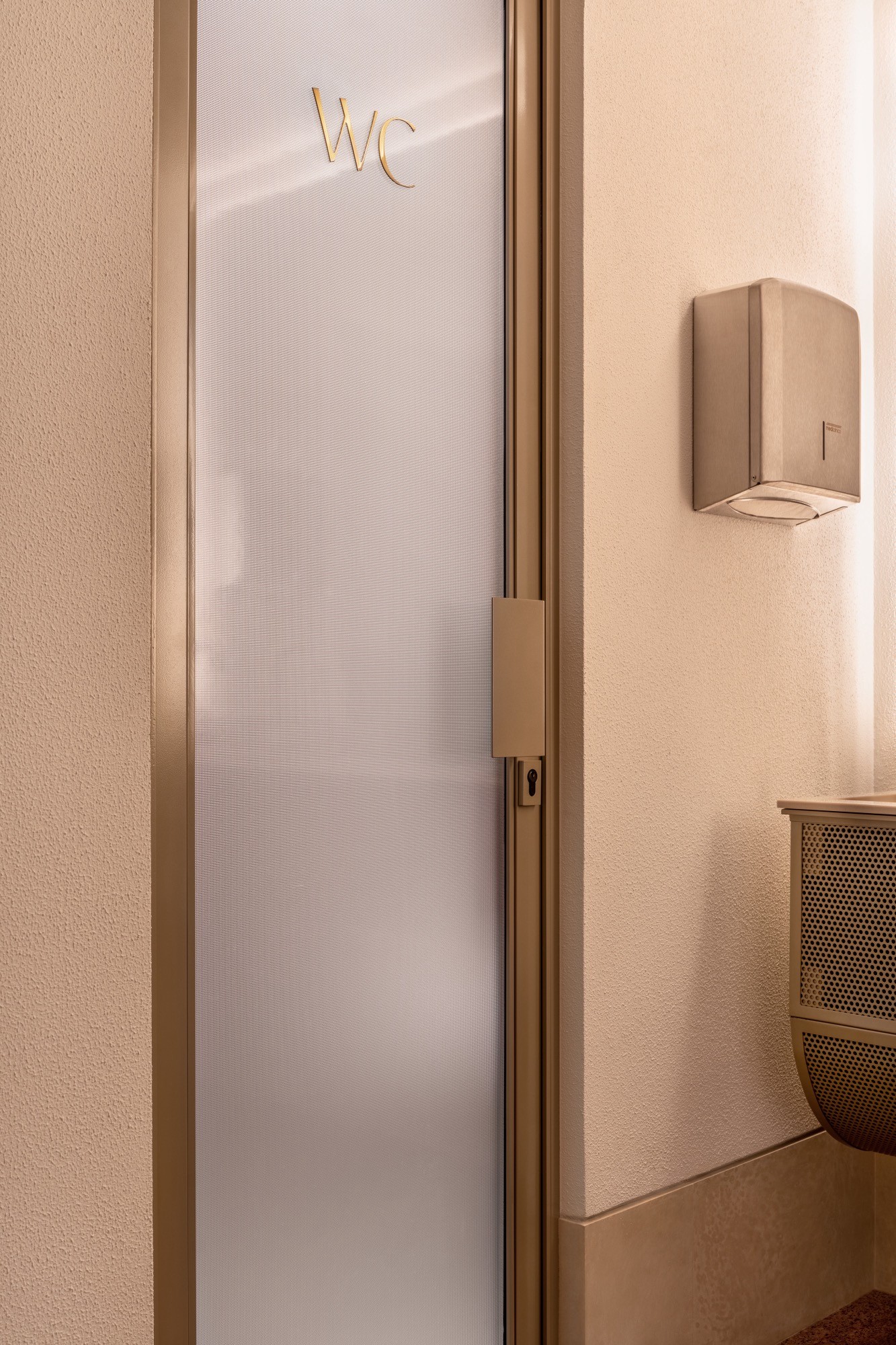 As portas interiores têm janelas de vidro duplo desenhadas exclusivamente para este projeto com efeitos visuais e fechaduras especiais.