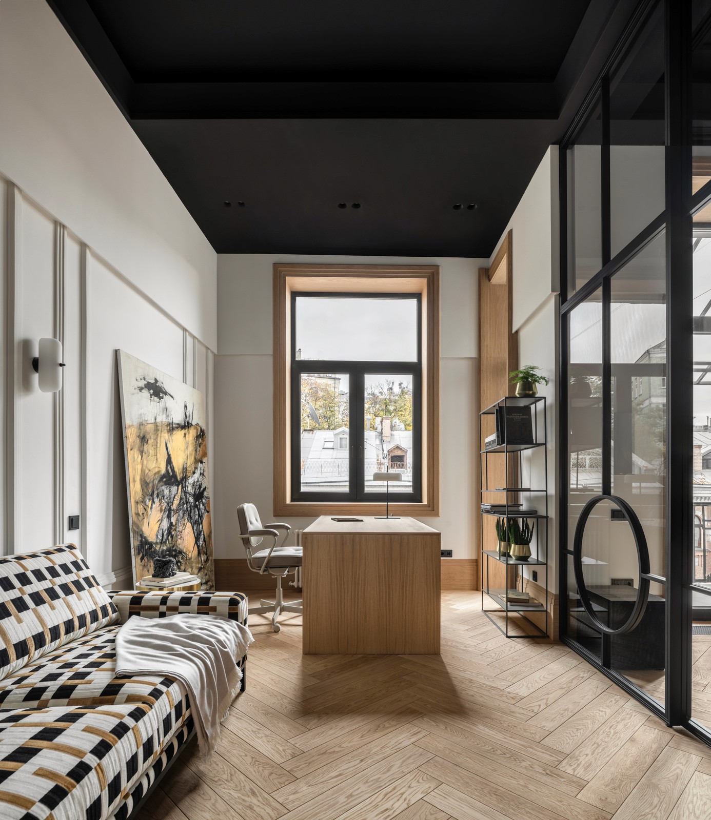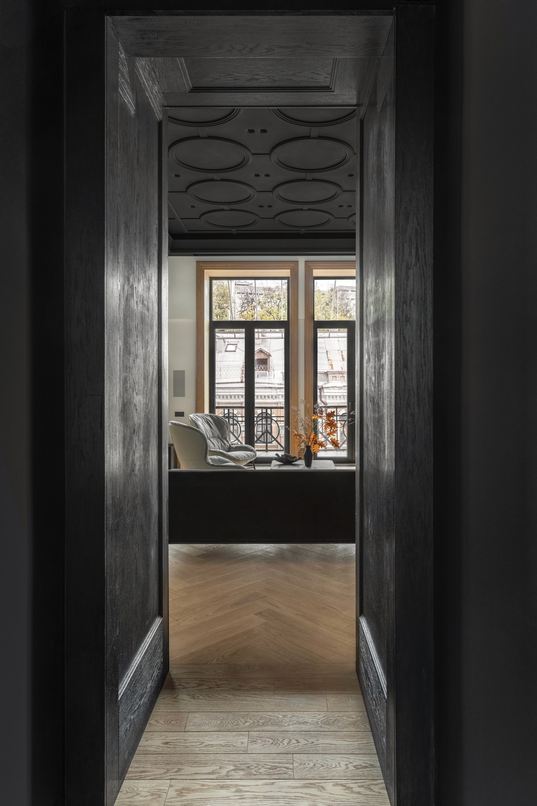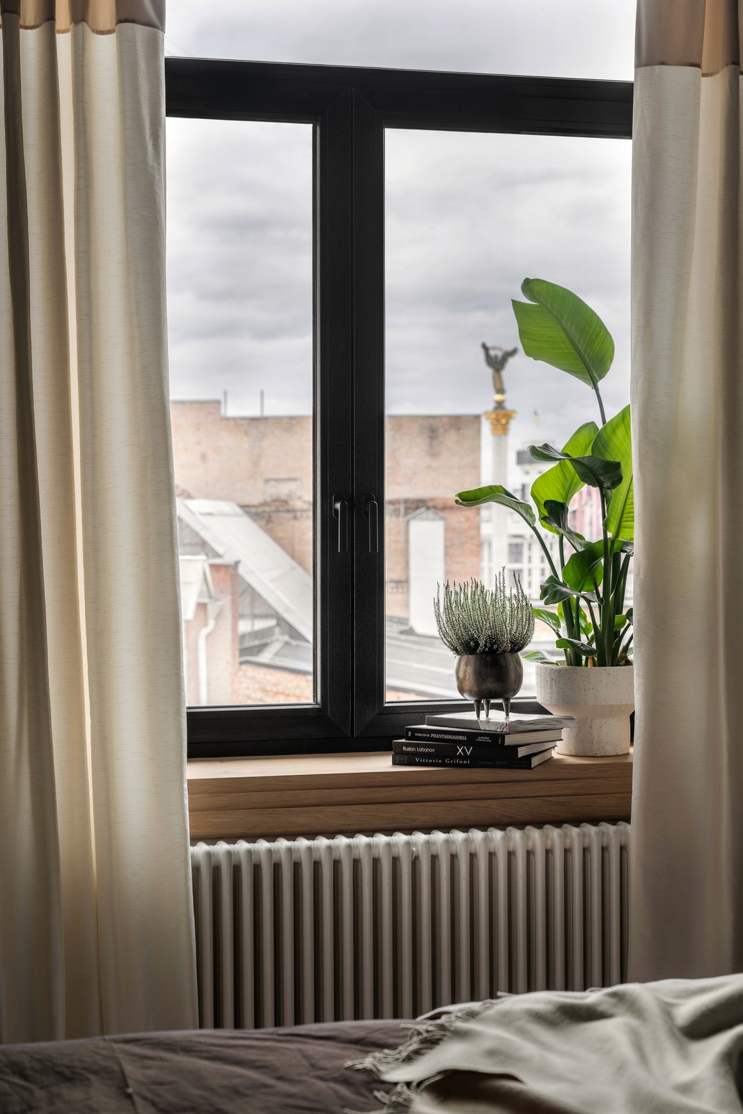 Graças à cor escura do perfil, combina visualmente com o design do edifício histórico.