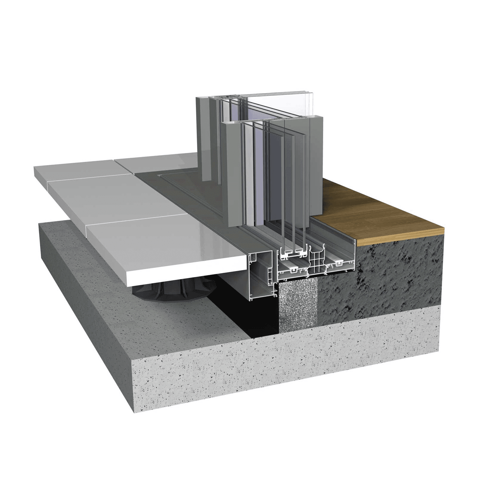 Perfis totalmente ocultos do chão ao teto e da parede à parede. Linhas elegantes e uma vista desobstruída.