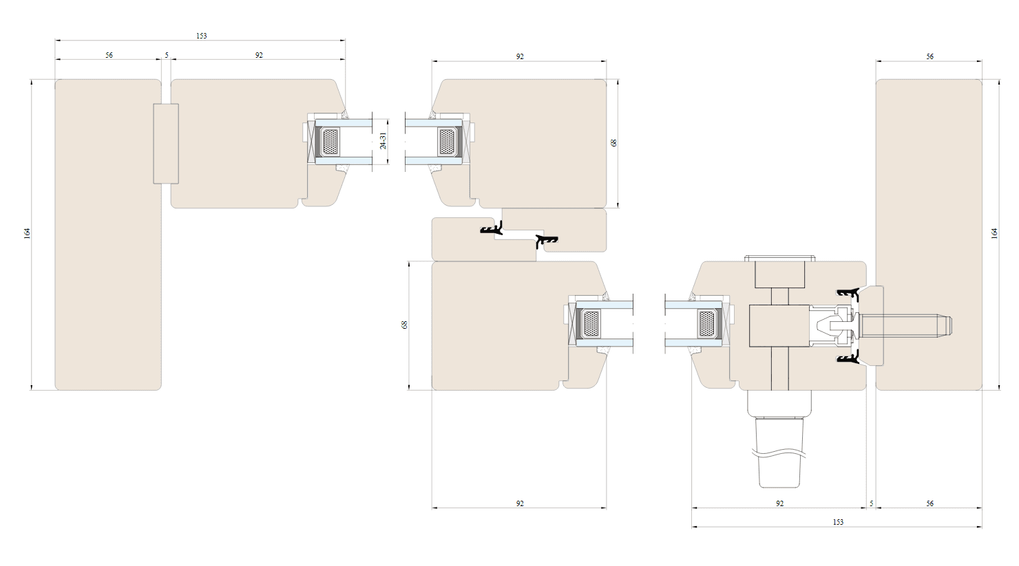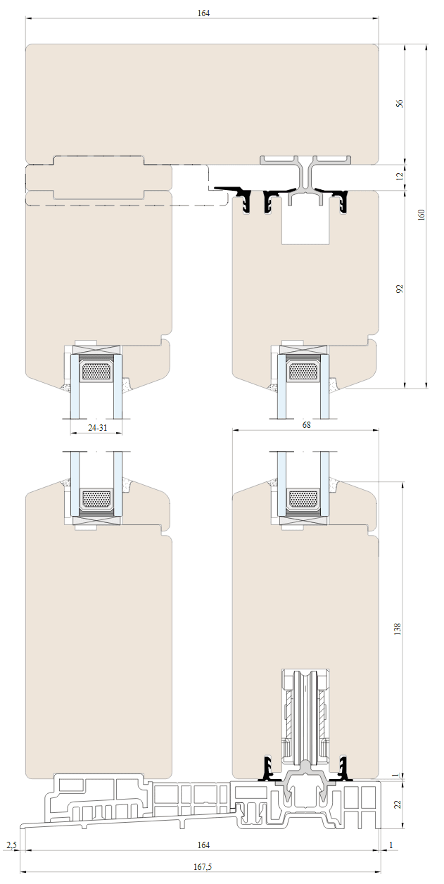 Perfil com uma profundidade de construção de 164 mm